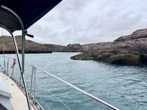 Vorgestern Abend hatten wir Besuch von Scott und Todd – seit 12 Jahren in Kanada lebende Amerikaner – vom Nachbarschiff. Scott war gleich nach unserer Ankunft zu uns rüber zur Begrüssung gekommen und so luden wir sie etwas später auf den Abend zu einem Bier auf die Seppi ein. Sie erschienen allerdings mit eigenem, nicht alkoholischem Getränk und selber gebackenen Cookies. Schnell wurde klar, dass sich da zwei Seiten gegenüber sassen, deren Ansichten unterschiedlicher nicht sein könnten. Wir erfuhren, dass die Linken bzw Demokraten schon immer die USA beherrschten, egal wer an der Macht war. Dass in den USA Menschen, die von der Norm abweichen inhaftiert, in Konzentrationslager gesteckt und umgebracht werden, alles in den USA von 21 Leuten beherrscht werde, die Gesetze einfach so ändern könnten, alle Schwarzen ein mentales Problem hätten und natürlich die Medien alle lügen.