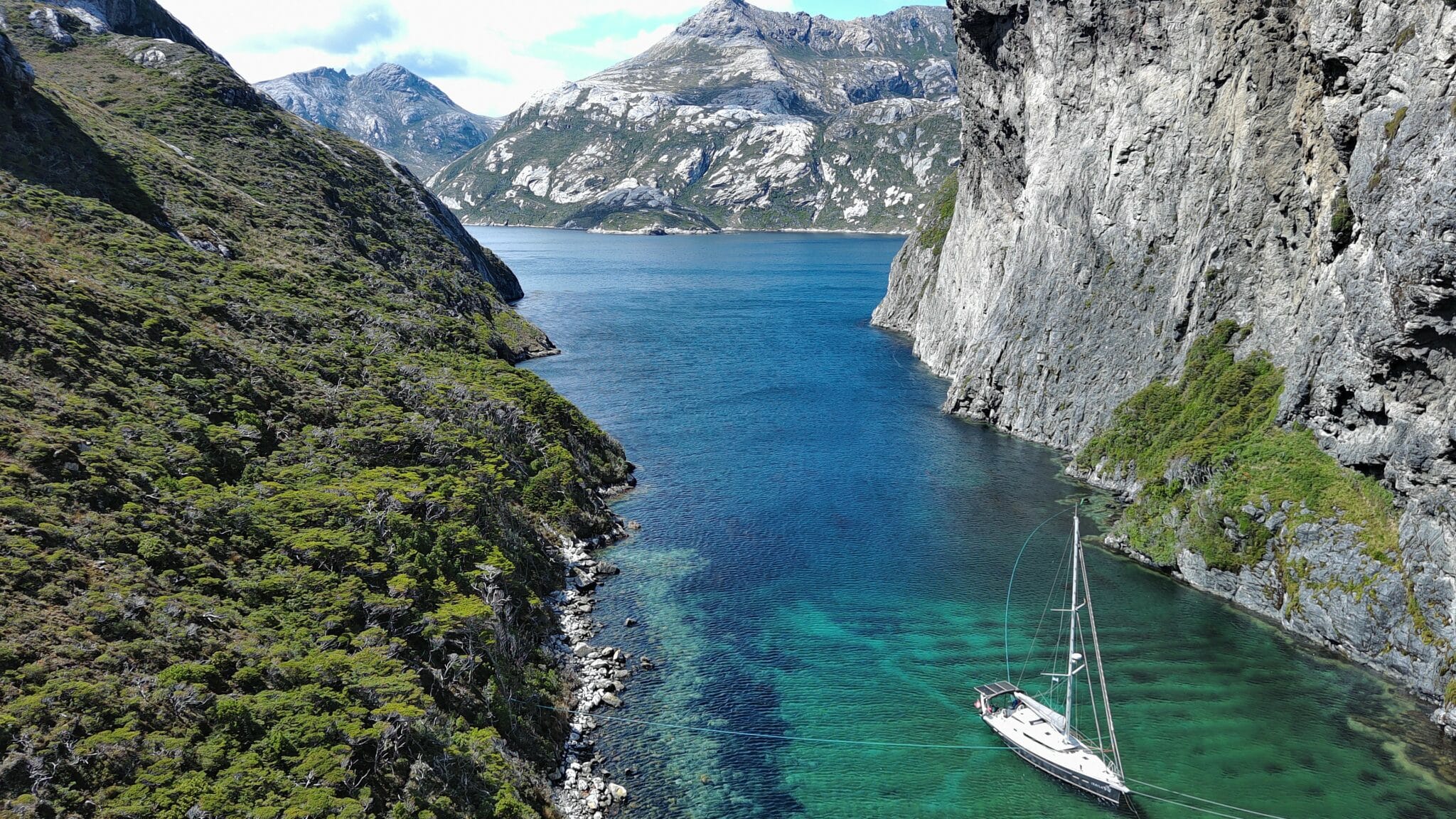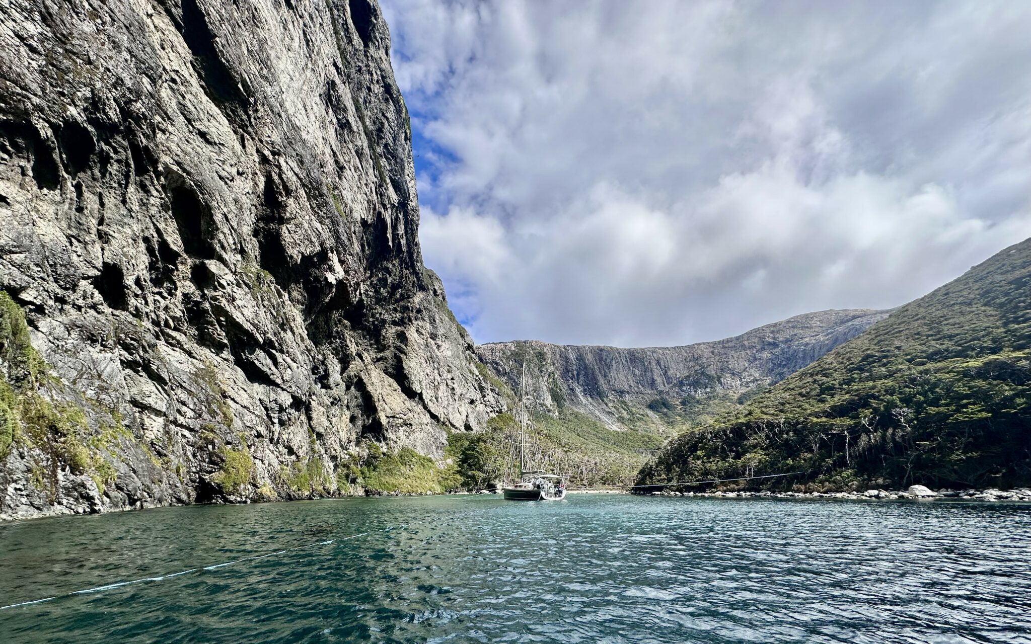 Heute Morgen steckten uns die gestrigen Anstrengungen noch in den Knochen. Auch die Unsicherheit nachts, ob das mit den Leinen wirklich funktioniere, hinterliess Spuren. Aber der unerwartete Sonnenschein beim Frühstücken machte alles vergessen und lockte uns an Land. Was für ein Traum diese Bucht doch ist!