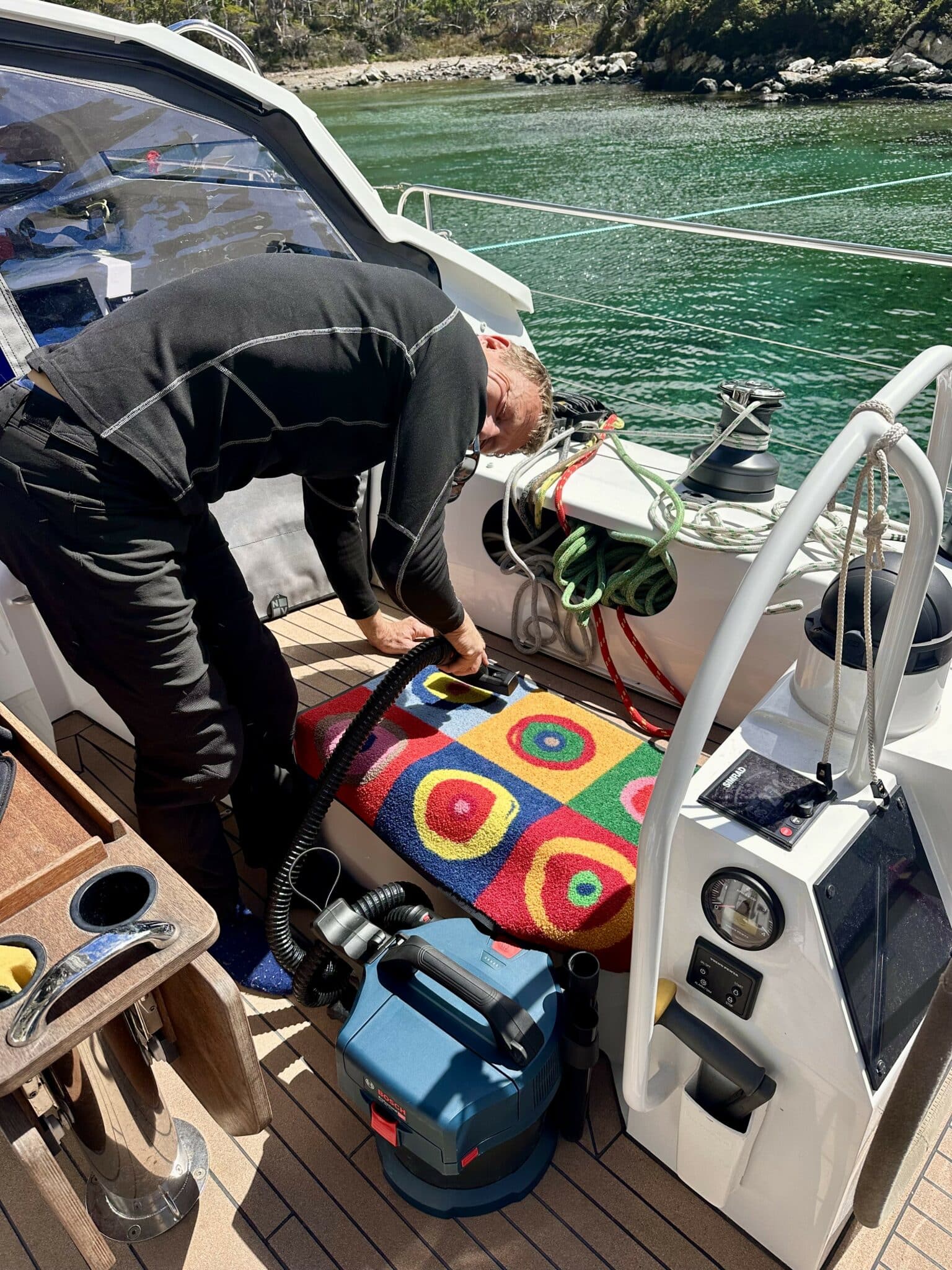 Zurück auf dem Schiff, holte uns der Bordalltag ein: Staubwischen und Staubsaugen.