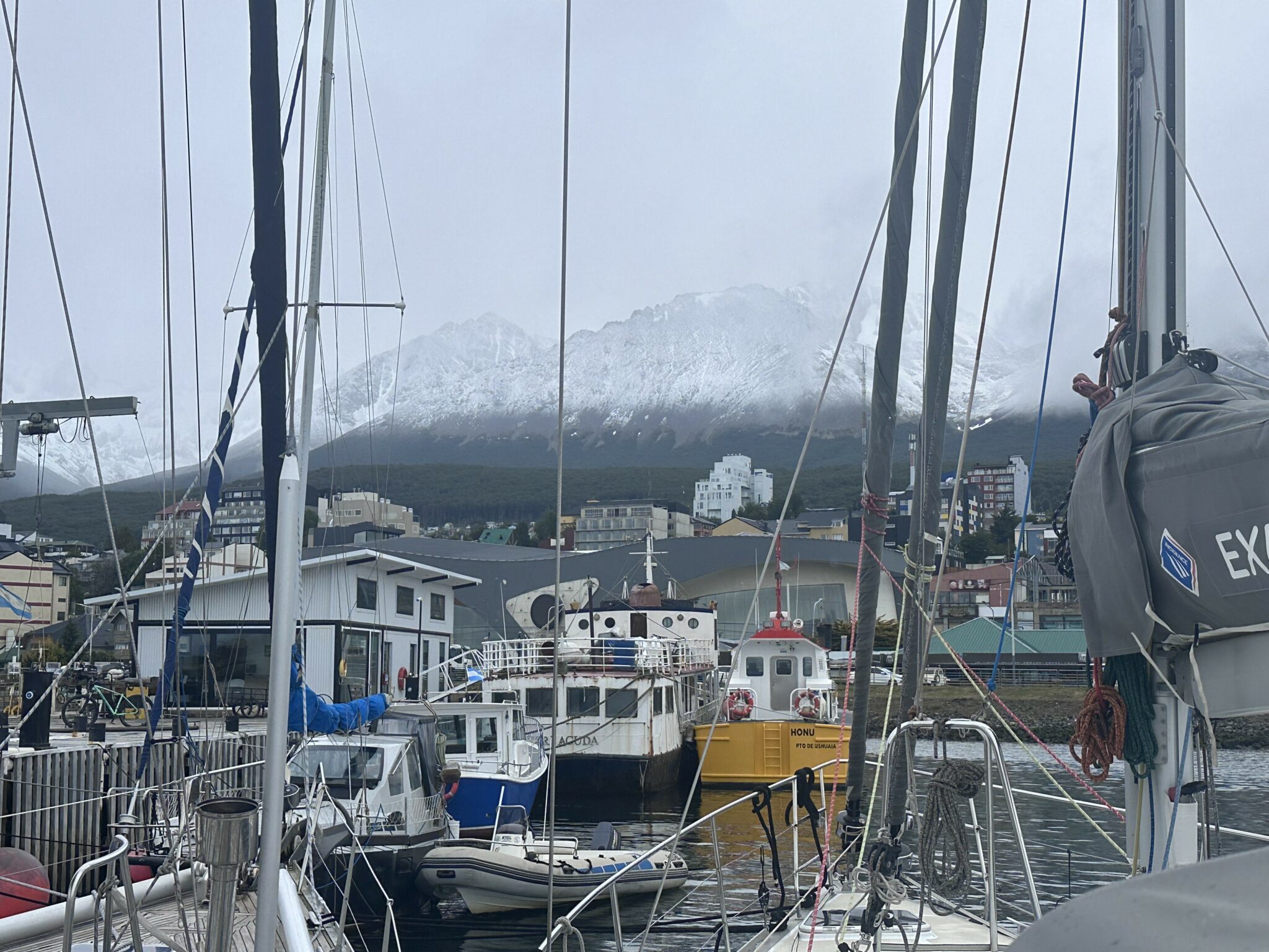 Bei unserer Ankunft kannten wir alle Schiffe von weiter oben im Norden. Mars, Pionero, Cajou, Rubicon und Zama, alle da. Alle mit Ziel Antarktis, was wir uns – doch schon dort gewesen – schenken.