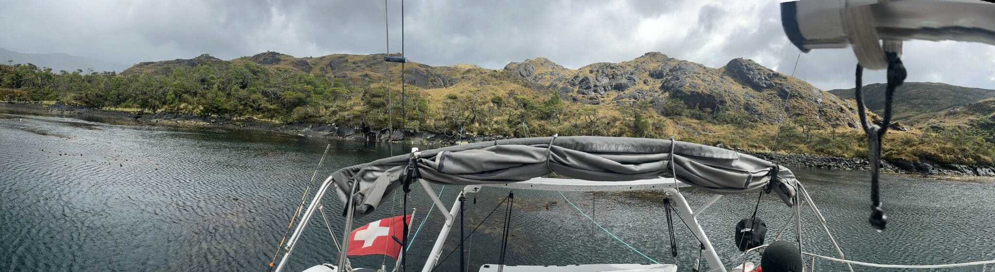 Die Sonne zeigte sich gestern und heute nie mehr als eine Minute und insgesamt wohl kaum mehr als fünf Minuten. Der Regen seinerseits macht es umgekehrt, er unterbricht seine Aktivitäten nur ganz kurz. So setzten wir bisher – trotz Wiedererstarken des Skippers – noch keinen Fuss an Land. Erste Anzeichen eines Patagonienkollers zeigen sich – zwar noch zaghaft – ab und zu. Vor allem, wenn wir die Bilder der Segler- und Reisefreunde aus all den warmen Gefielden sehen oder von der klirrenden Kälte zuhause, aber eben bei strahlendem Sonnenschein, hören. Aber gut, auch hier geht es wieder mal aufwärts. Im Moment sitzen wir windbedingt in unserer Caleta fest. Es pfeift mit 30 Knoten im Rigg, die Landleinen ziehen an den Bäumen, der Regen prasselt aufs Deck, aber wir liegen sicher. Im grossen Kochtopf köchelt eine feine Gemüsesuppe mit Hackbällchen, der Brotbackautomat macht Joghurt. Und wir suchen jetzt eine Serie zum binge watchen. Starlink mit unbegrenztem Datenvolumen sei Dank!