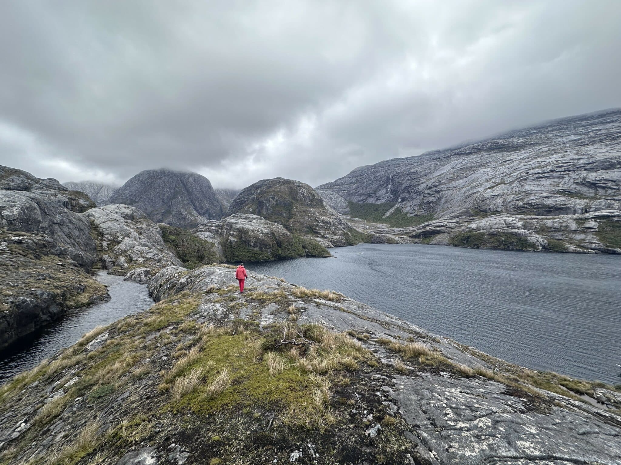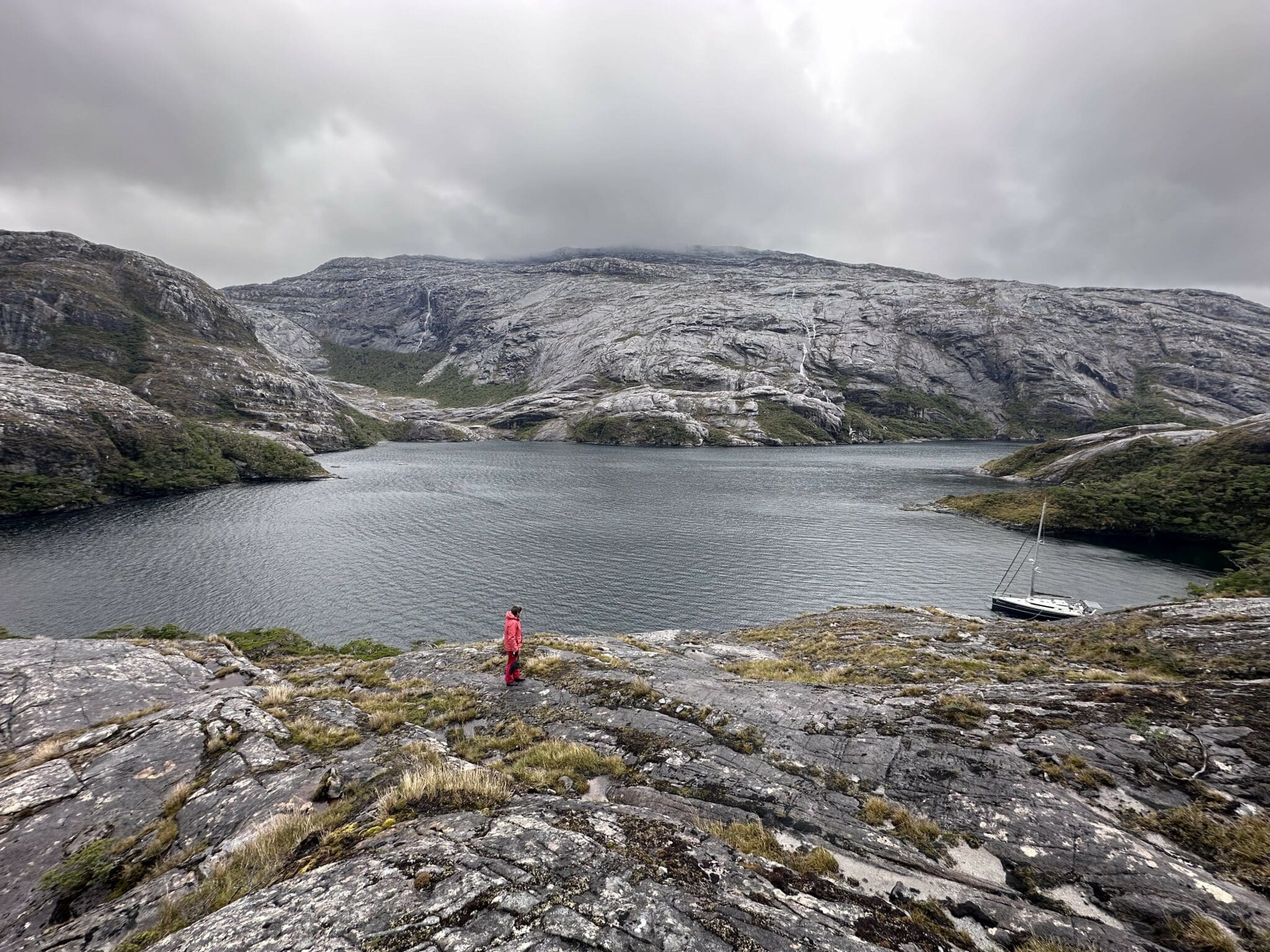 Wetterbedingt zogen wir schon nach einer Nacht weiter. In der Caleta Brecknock unternahmen wir noch vor dem Ablegen bei einem vermuteten trockenen Zeitfenster eine kleine Wanderung hoch zum See. Das war wirklich nett und erlaubte natürlich einen besseren Blick in die Felsbucht.