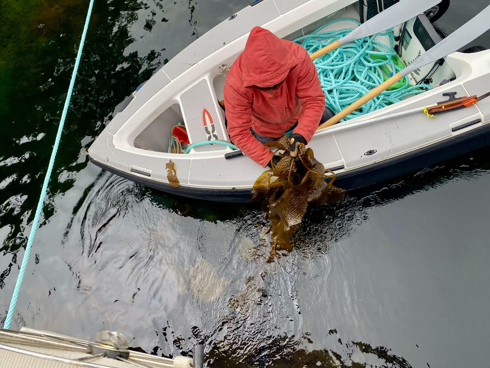 Zur Vorbereitung befreite der Skipper die Ruder von Kelp. Beim Ankern hatten wir plötzlich grossen Widerstand im Ruder und führten das auf Kelp zurück.