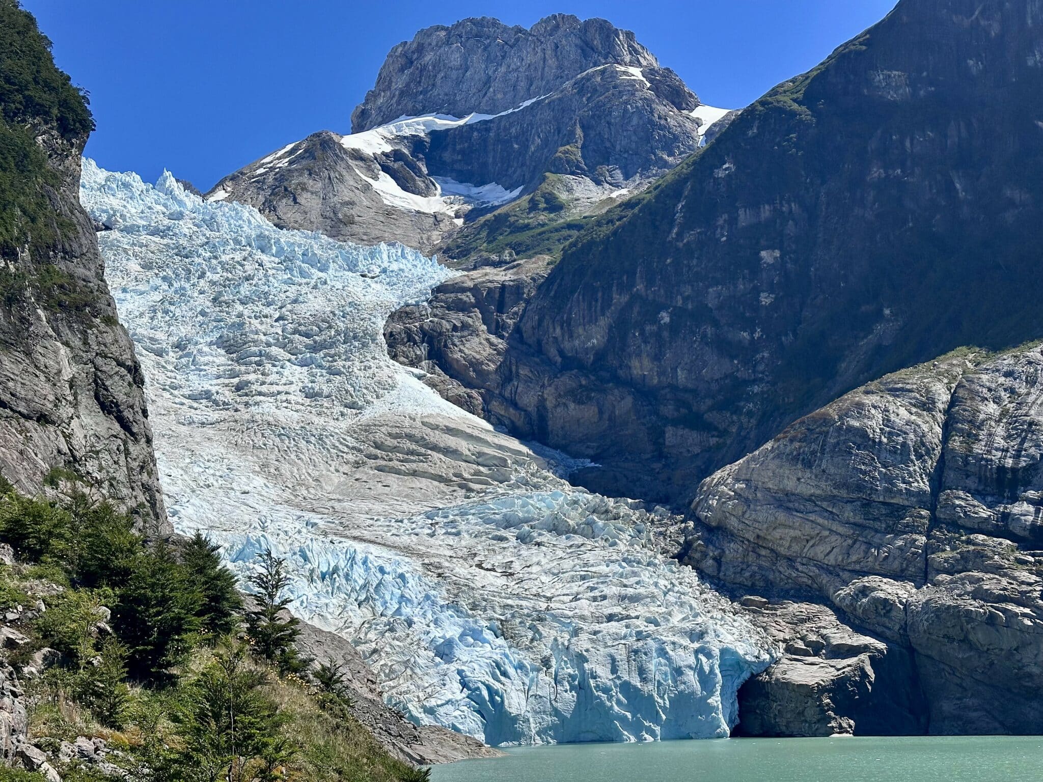 Aber wir sahen den Wasserfall und schliesslich auch den Zufluss. Weiter ging es zum Serrano-Gletscher, einem schönen Exemplar eines Hängegletschers.