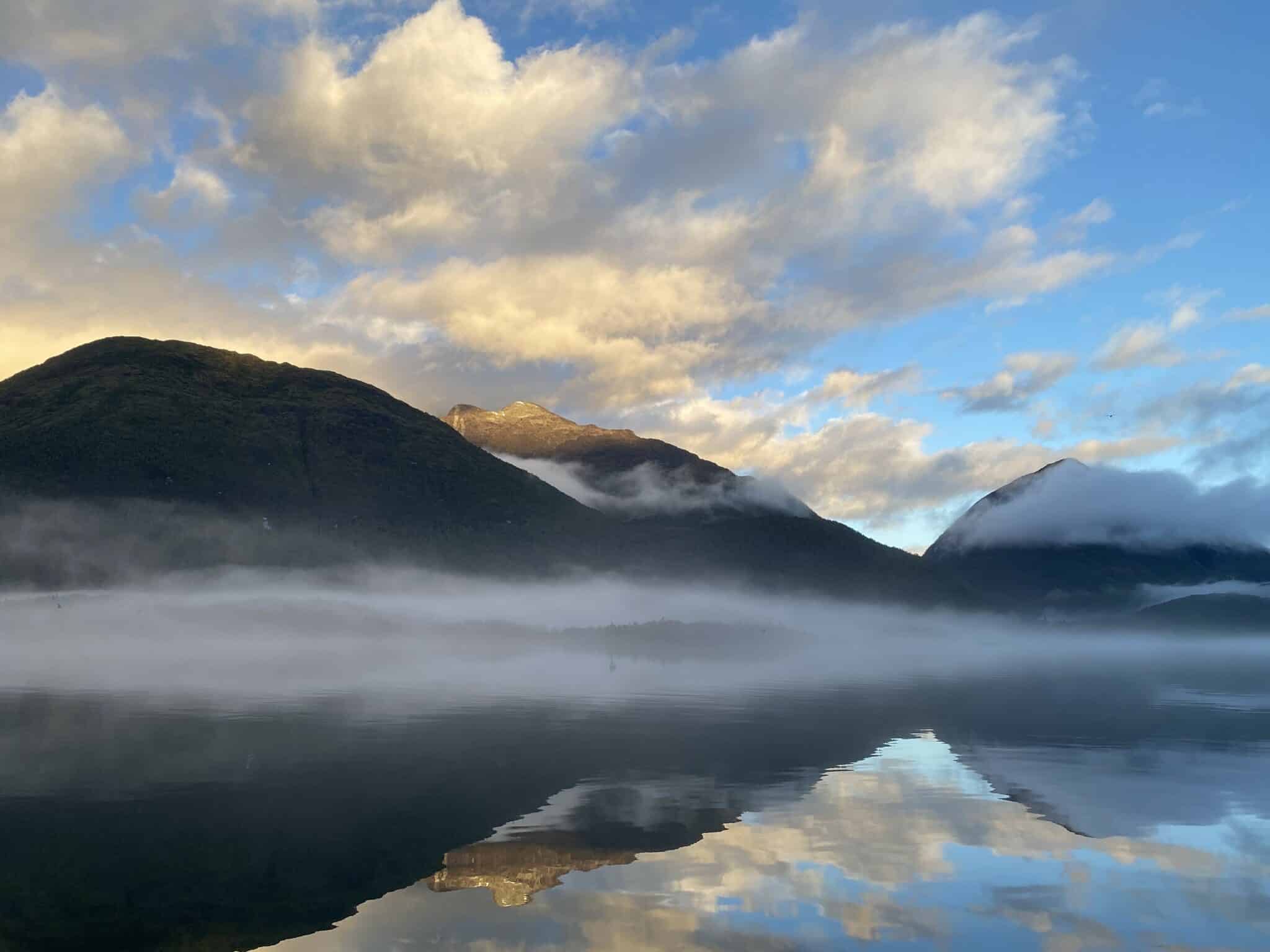 Bei Abfahrt wenige Minuten nach dem Wachwerden war es noch dunkel mit erster Dämmerung. Dann setzte Nebel ein. Mit dem stärker werdenden Licht eine besondere Stimmung.