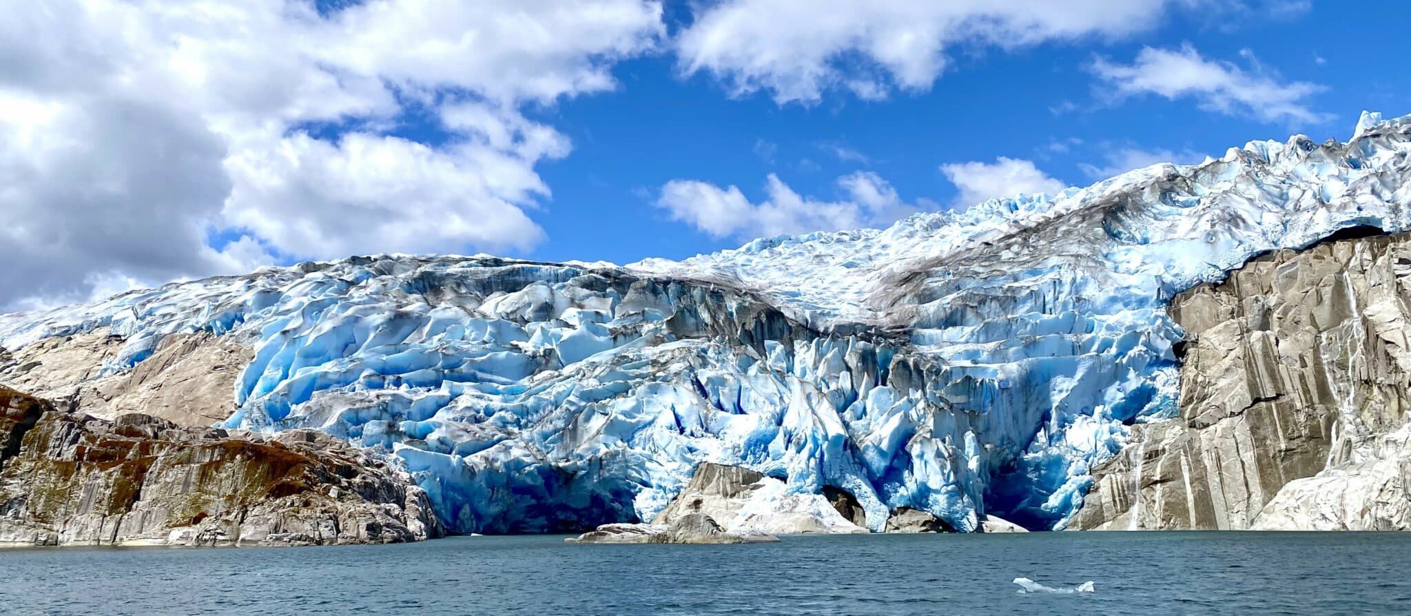 Bei wiederum schönstem Wetter ging es motorend zum nächsten Gletscher, dem Témpanos, der wie der PíonXI zum Grossen südlichen Eisschild gehört. Eher ein hängender Gletscher, der kaum kalbt. Daher war die Anfahrt auch vollkommen eisfrei.
